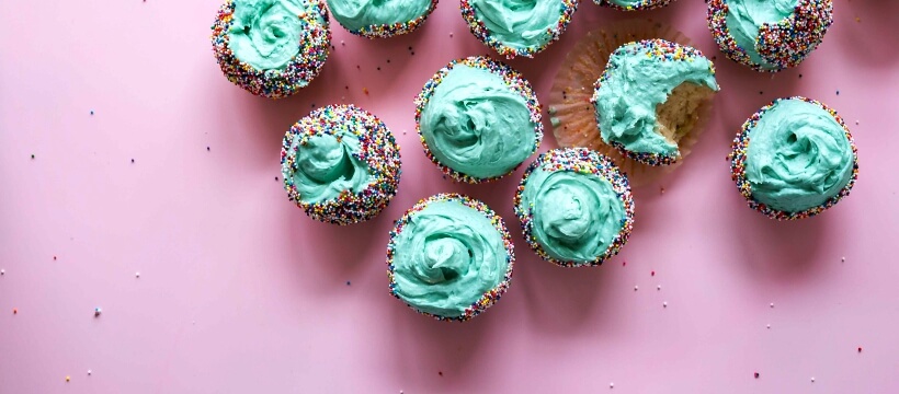ブルーのクリームカップケーキ