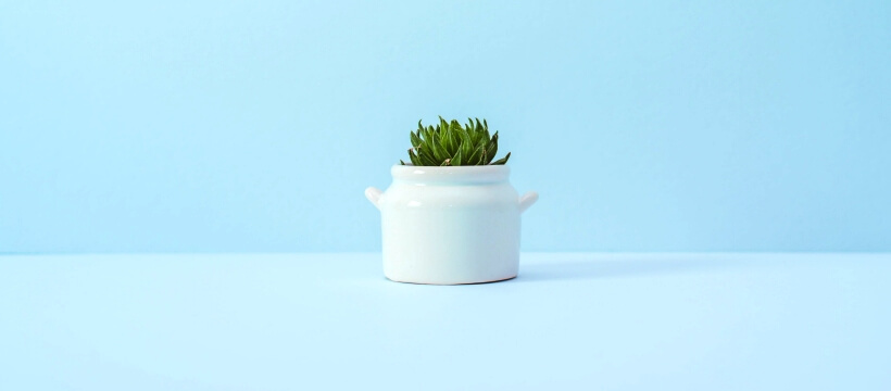 ブルーの背景に観葉植物