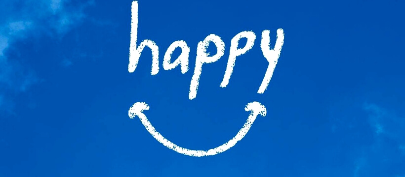 青の背景にhappy