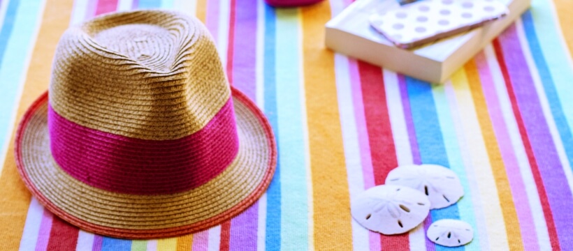 カラフルタオルと麦わら帽子