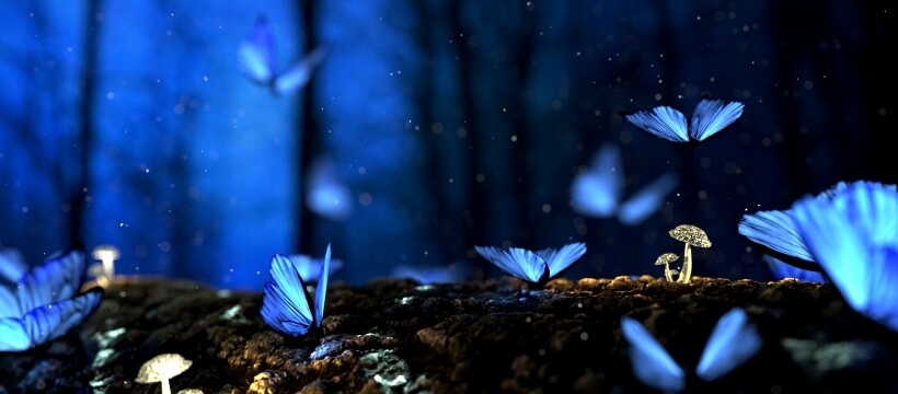 夏の夜の青い蝶