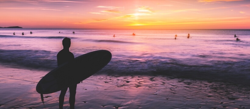 サーファーとマジックアワーの海