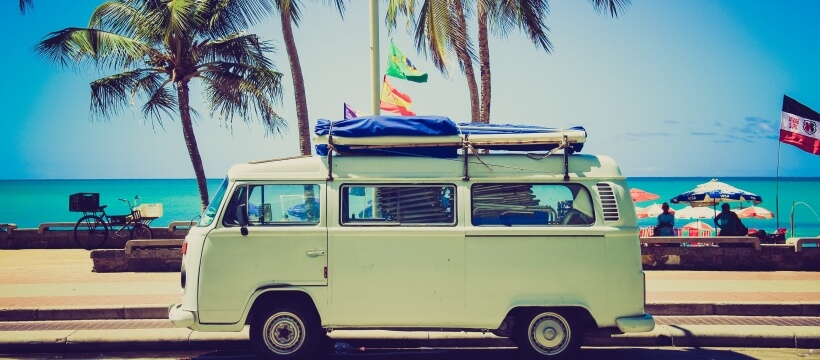 椰子の木とワゴン車