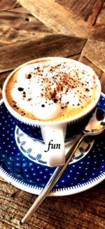 アップルiPhone12Mini・13Miniのロック画面、ホーム画面の無料壁紙・待受けをコーヒーがある風景の写真画像で作ります。よかったらスマホにダウンロードして使って下さい。